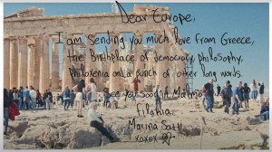 Την απεύθυνση προς την «Ευρώπη», ή πάντως προς τους τουρίστες που έρχονται στην Ελλάδα, υπηρετεί και το οπτικό –μη λεκτικό- κείμενο του βίντεο, το οποίο δεν έχει καμία σχέση με κάποια ερωτική ιστορία, αλλά μόνο με την εμπειρία όσων επισκέπτονται την Αθήνα για να την θαυμάσουν.