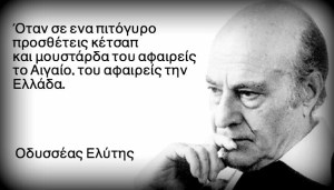 Δεν προξενεί καμία αίσθηση αντίφασης, ούτε στον Ελύτη ούτε στους σημερινούς έλληνες και ελληνίδες εκπαιδευτικούς που αναπαράγουν με θαυμασμό και με διδακτική πρόθεση το λόγο του, το να μιλά κάποιος για την ελευθερία μιας φυλής. Την ίδια ακριβώς αδιαφορία για την ανακολουθία άλλωστε συναντάμε και σε ένα προγενέστερο κείμενο του «ποιητή του Αιγαίου», όπου περιγράφει το σοκ από τη συνάντησή του με τα «καλοζωισμένα Ελβετόπουλα» το 1948 και τη διαφορά τους από τα δυστυχισμένα και πεινασμένα πολεμόπληκτα ελληνόπουλα, με τα παρακάτω λόγια: